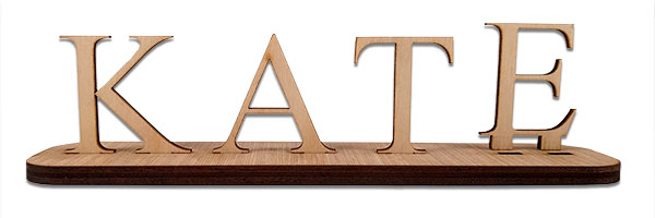 Everyone likes to see their name in print. At LaserDan, we have taken it to the next level by bringing your name plate into the 3D market. Prices start at only fifty cents per letter and accompanying bases start at only one dollar per inch. Custom sizes and materials are also available. For more information, please email us with the link below.